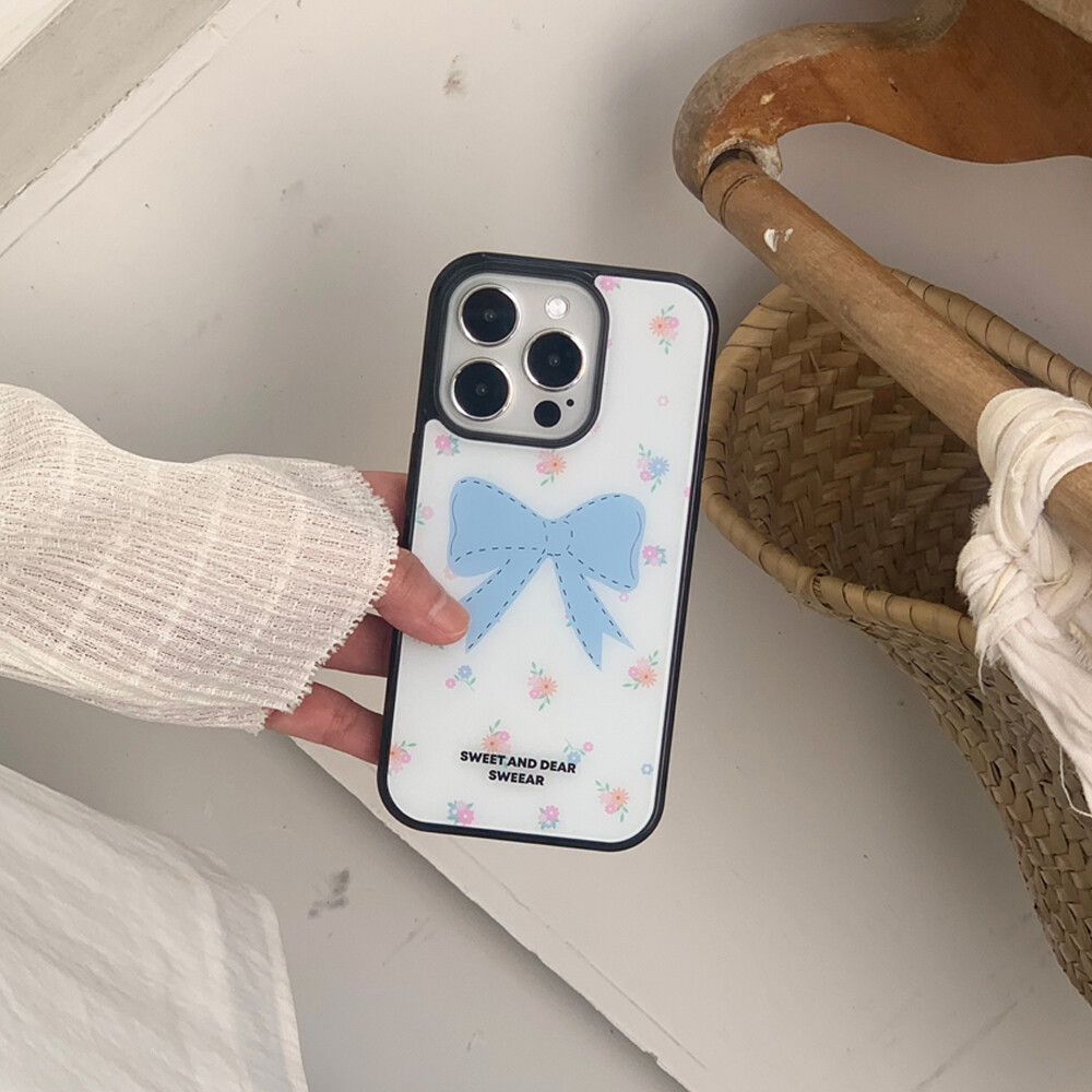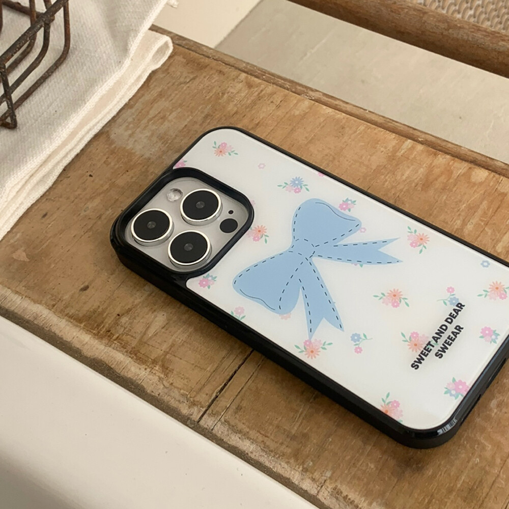 BLUE FLORAL RIBBON GLASS CASE