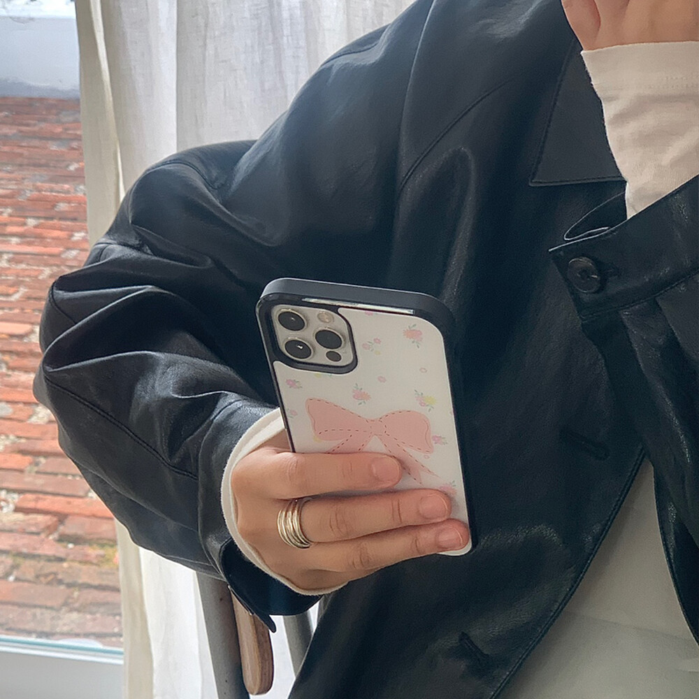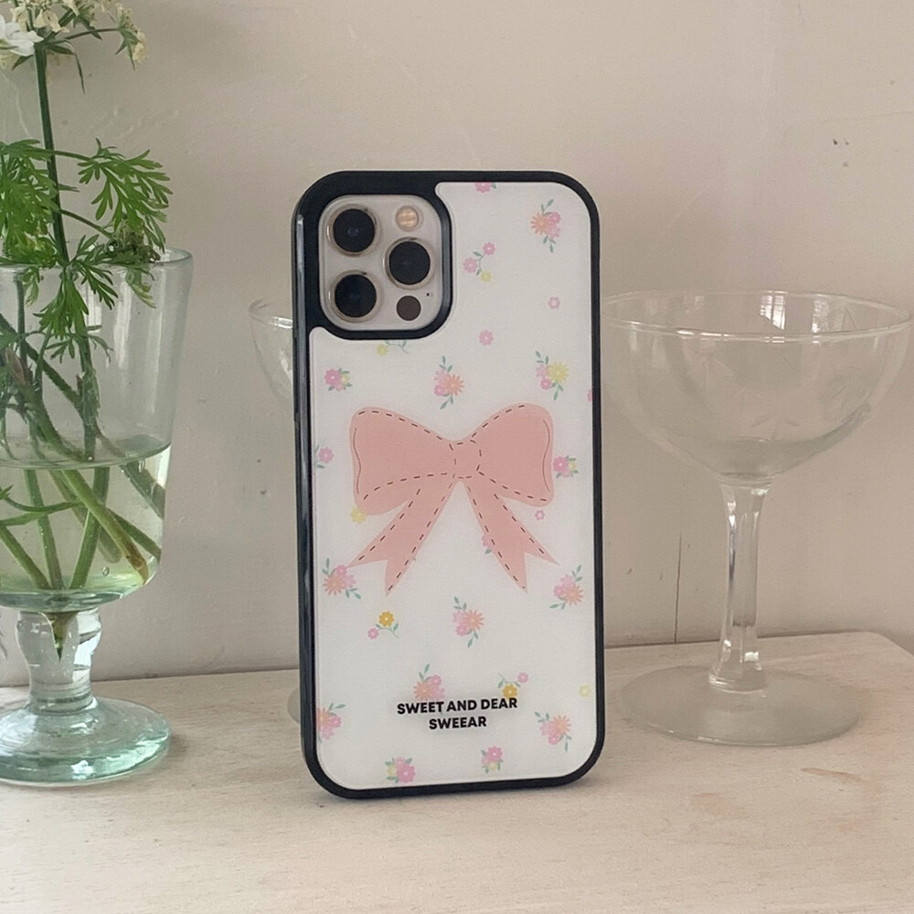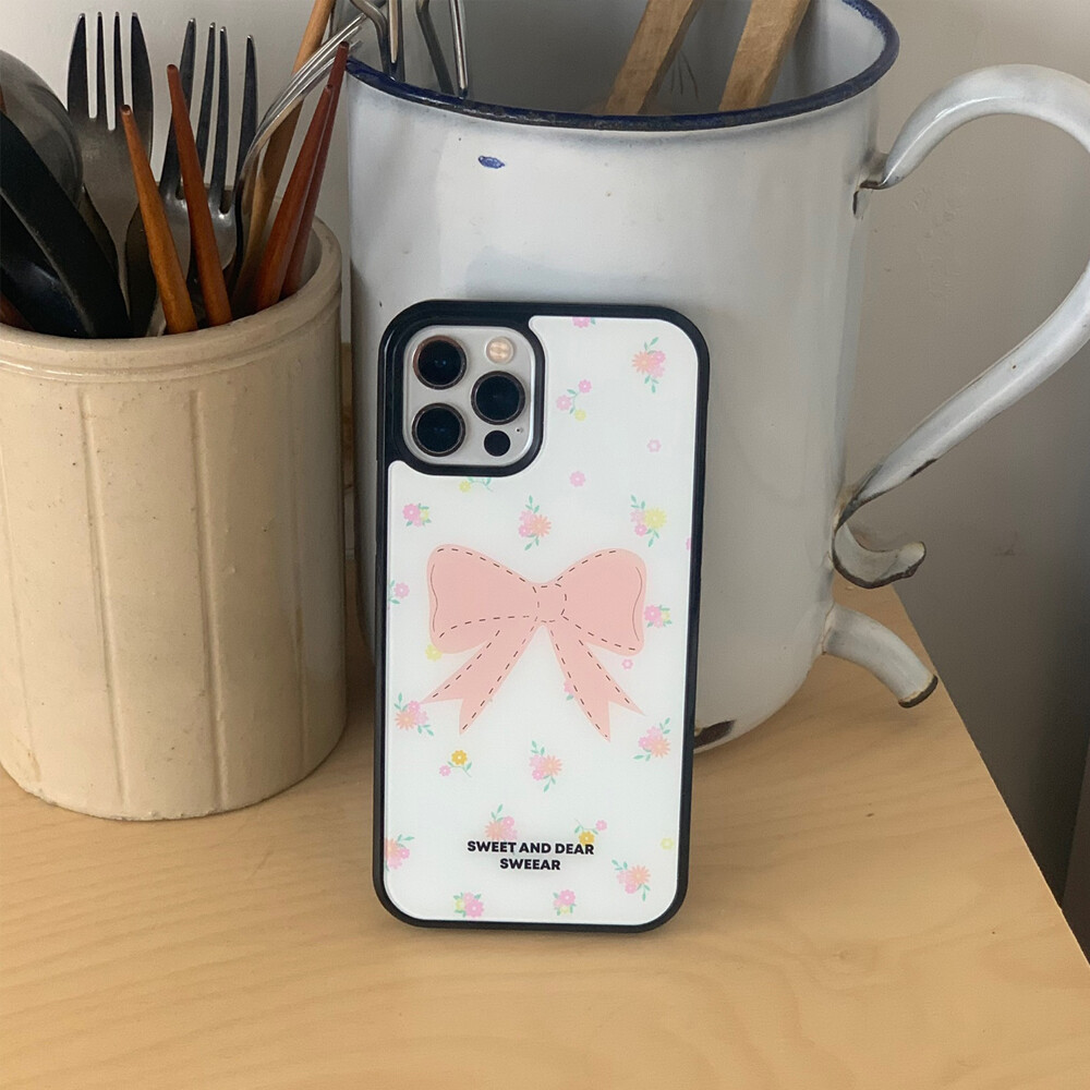 PEACH FLORAL RIBBON GLASS CASE