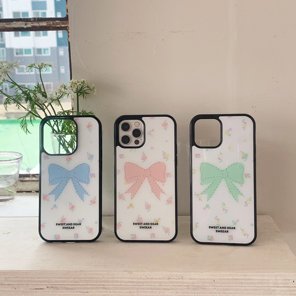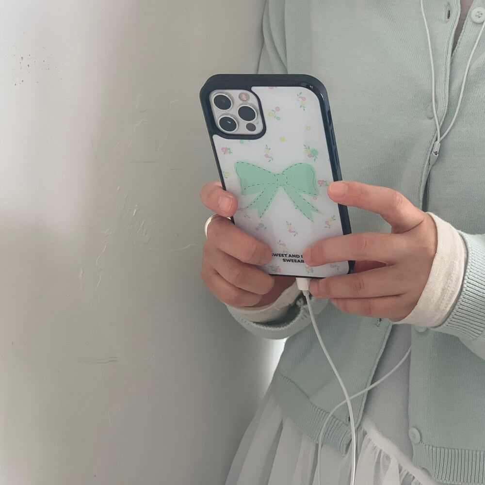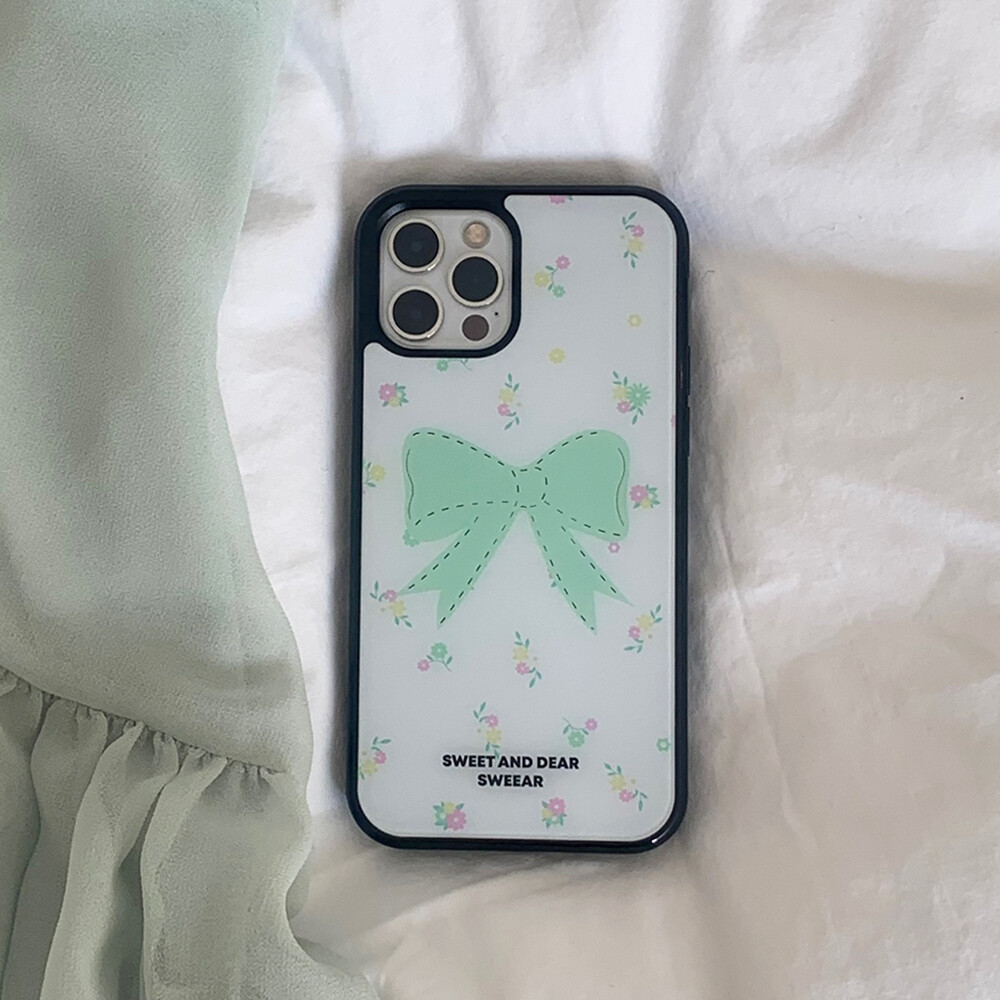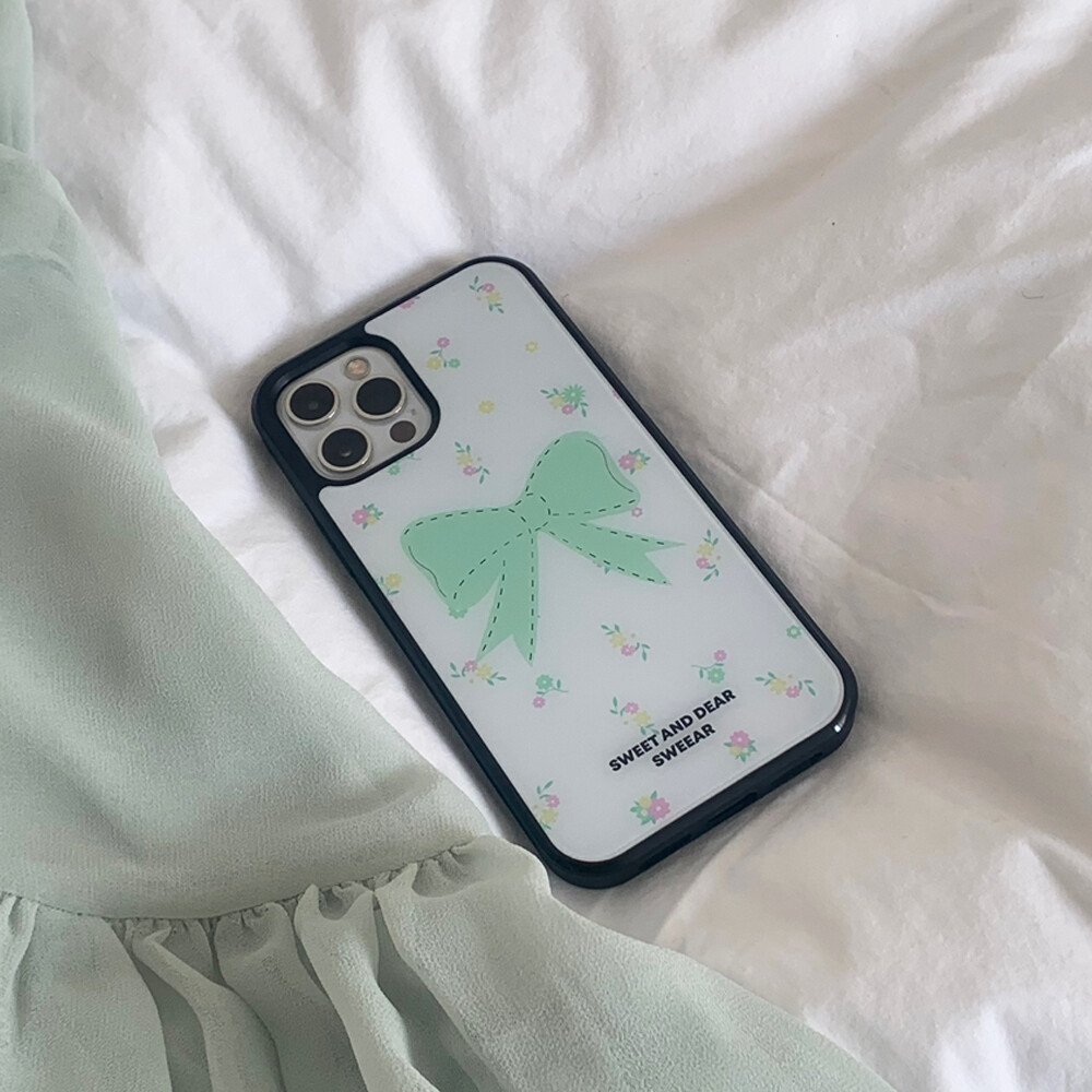 LIME MINT FLORAL RIBBON GLASS CASE